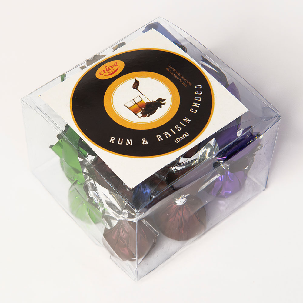 As you bite in, the smooth bitterness of dark chocolate gives way to the juicy raisin, releasing a warm, flavourful burst of rum – a sensory delight that lingers with every mouthful.